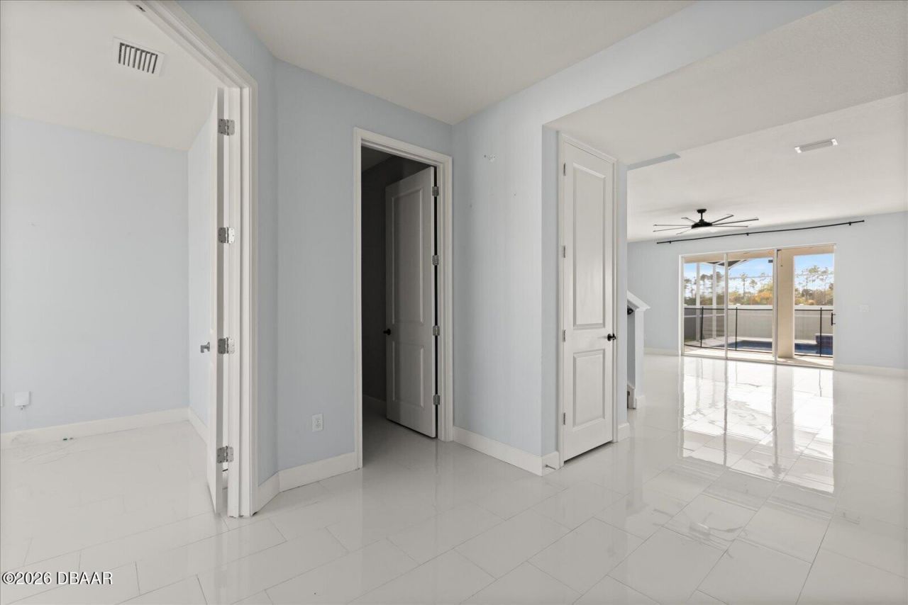 This spacious two-story home offers four bedrooms, two and a half bathrooms, a two-car garage, and a private fenced pool in the desirable Waters Edge community. A carpet-free flex room at the entry is ideal for an office, playroom, or game room. The open living area flows into the upgraded kitchen and dining space, perfect for everyday living and entertaining. The kitchen features Cambria quartz countertops and backsplash, new sink and faucet, updated hardware, and brand-new appliances. Recent upgrades include fresh interior and exterior paint, porcelain tile throughout the downstairs, and new luxury vinyl flooring upstairs. The downstairs bath has been updated with a new toilet, vanity, and mirror. Enjoy the brand-new private pool (Oct 2025) with a 10-year warranty. Waters Edge offers a playground, walking trails, a 24-acre lake, and lakeside gazebo, all conveniently located near shopping, dining, I-95, I-4, top-rated schools, and just 20 minutes to Downtown New Smyrna Beach.