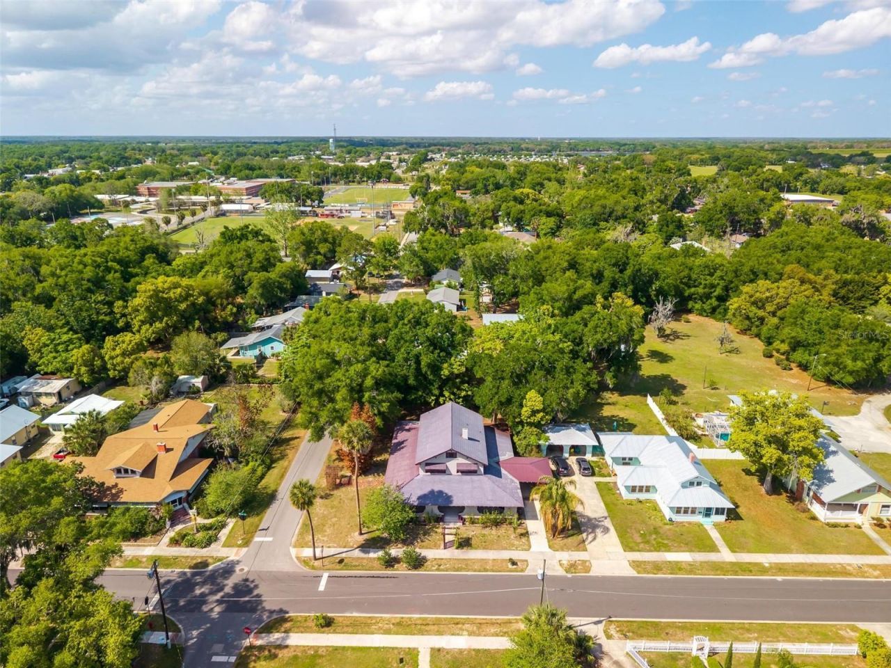 Step into timeless charm with this beautifully renovated 1920s Craftsman home, perfectly positioned on a corner lot just moments from downtown Umatilla. Blending historic character with modern updates, this expansive residence offers 3,165 square feet of thoughtfully designed living space that invites you to slow down and truly feel at home. From the moment you arrive, the full wraparound porch sets the tone-complete with six exterior doors and two classic porch swings, it's the perfect place to enjoy quiet mornings or unwind in the evening breeze. Inside, original craftsmanship shines through with rich hardwood floors, soaring ceilings, elegant archways, and a warm gas fireplace that anchors the living space. The heart of the home is the updated kitchen, featuring quartz countertops, 42-inch cabinetry, stainless steel appliances, and a gas stove, along with a dedicated eat-in area for casual dining. Entertain with ease as the formal dining room flows seamlessly into the living room through beautiful French doors, while built-in bookcases add both function and charm. A separate study with custom built-ins creates the ideal home office or reading retreat. With six bedrooms and three and a half bathrooms, there is no shortage of space. Bedrooms located on the main level offer flexibility, including the option for a primary suite with an attached full bathroom. Upstairs, additional bedrooms provide room for family, guests, or creative use. The third-floor walk-up attic offers even more possibilities-whether for storage or future expansion. Major systems including plumbing and electrical have been updated to meet current standards, allowing you to enjoy the character of a historic home with the confidence of modern improvements. Ceramic tile in the kitchen and bathrooms ensures durability, while the attached covered carport adds everyday convenience. Located approximately 38 miles from Orlando and 49 miles from Daytona Beach, this home offers small-town charm with easy access to larger city amenities and coastal escapes. Homes like this rarely come available-where historic elegance, modern updates, and exceptional space all come together. Schedule your private showing today and experience the character and warmth of this one-of-a-kind Craftsman home. All information deemed reliable, but must be verified by buyers. All room measurements are approximate and must be also verified by buyers.