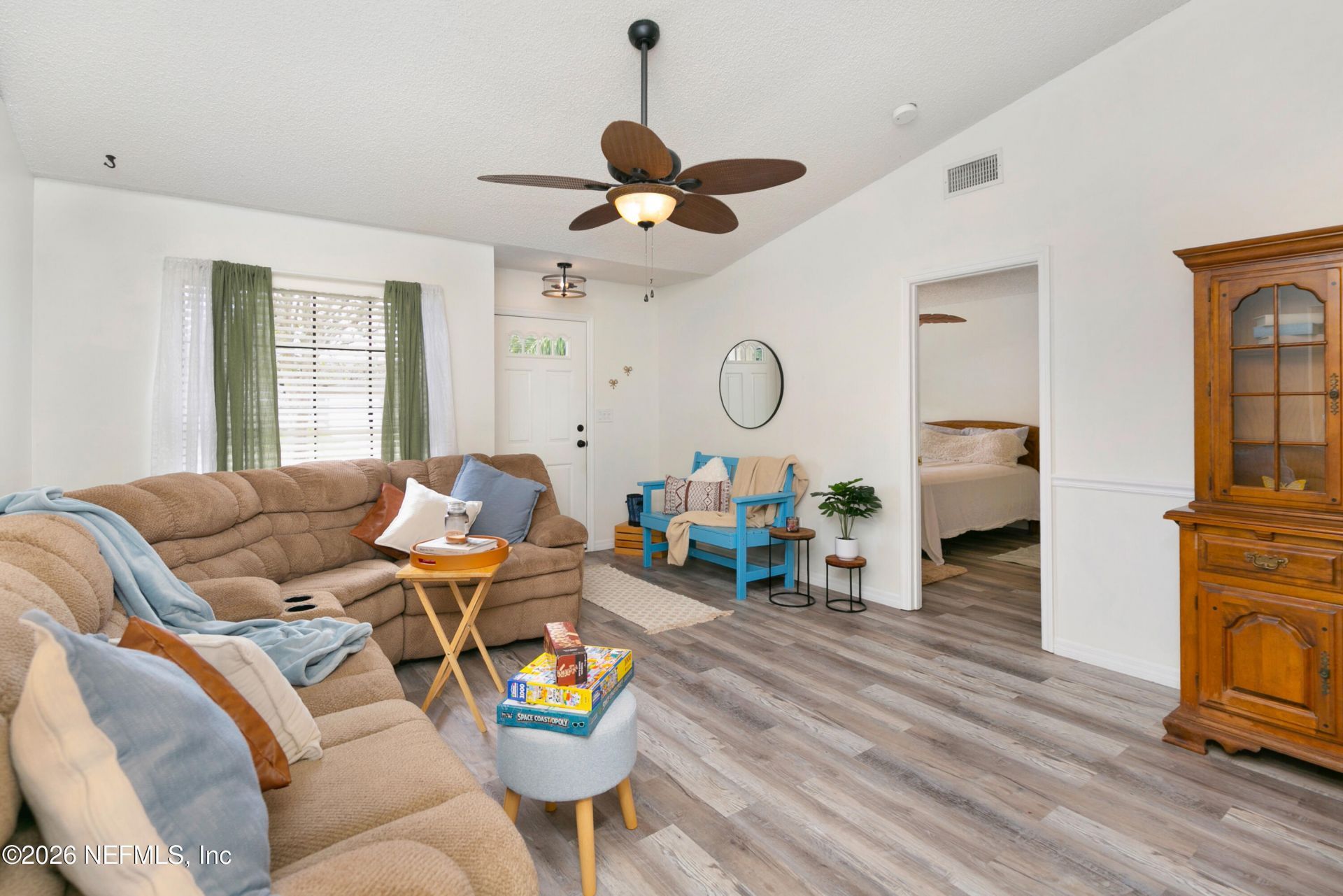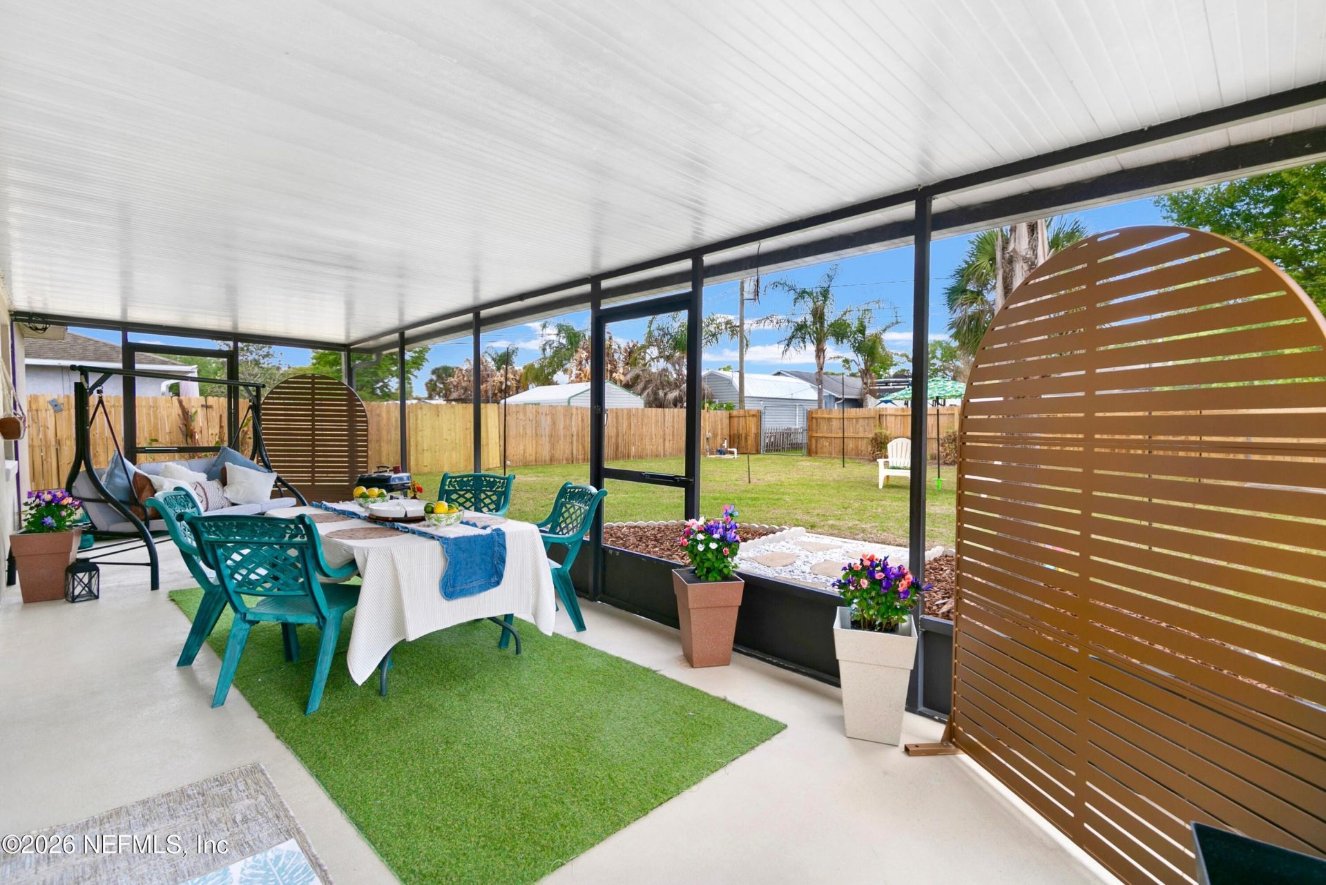 Welcome to this charming, well maintained home in Titusville! Offering 1,630sqft under air, this 3-bedroom, 2- bath residence features a desirable split plan providing both comfort and privacy. The spacious living area is filled with abundant natural light from Large windows, creating a bright and inviting atmosphere throughout. The layout flows seamlessly into an oversized and enclosed patio perfect for year-round living, entertaining or transforming into your dream space. With multiple access points leading to the enclosed patio, the layout offers exceptional flexibility to suit your lifestyle. The oversized garage is a stand out features built-in and large window, creating a functional and well lit workspace. Perfect for a workshop, storage, or hobby space. Outside, the fully fence yard with double gates offers plenty of room for outdoor activities, relaxing, and ample space to add a pool, carport or create your own private tropical oasis. Recent updates include a newer HVAC system, and updated flooring (2025), giving peace of mind and modern appeal! Additional features include a shed, washer and dryer that convey, and no rental restrictions making this an excellent opportunity for homeowners, investors, or those seeking a second home. Ideally, located in a quiet, established neighborhood, near shopping, dining, in major employers like Kennedy Space Center, SpaceX, Lockheed, and Boeing. Enjoy the excitement of rocket launches right from your backyard an iconic Space Coast experience! Just a short drive to Playalinda Beach, New Smyrna Beach and Orlando, offering the perfect balance of convenience and coastal living. With solid bones and endless potential this home is ready for its next owner to add their personal touch and truly make it. 2023 Yamaha jet ski is not included in the sale but for sale. Open house 4/4, 4/5, & 4/7.